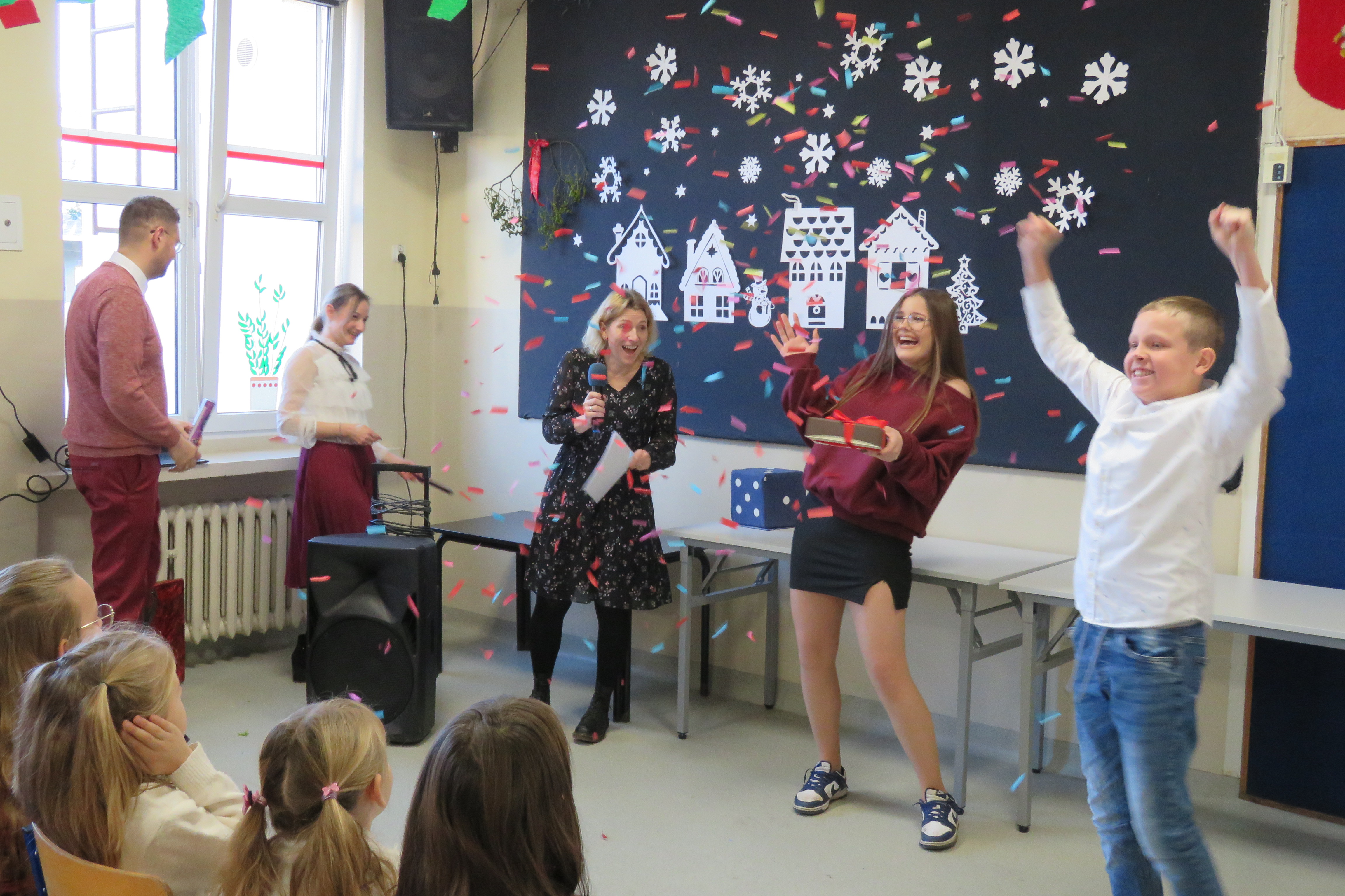 Po wspólnych igrzyskach przyszedÅ‚ czas na chwilÄ™ wytchnienia i tradycji. Przy nastrojowym dźwiÄ™ku akordeonu wspólnie zaÅ›piewaliÅ›my najpiÄ™kniejsze polskie kolÄ™dy. Ta muzyczna chwila wprowadziÅ‚a nas w magiczny nastrój, z którym udaliÅ›my siÄ™ na wigilie klasowe, by w mniejszym gronie dzielić siÄ™ opÅ‚atkiem i radoÅ›ciÄ…. ? we